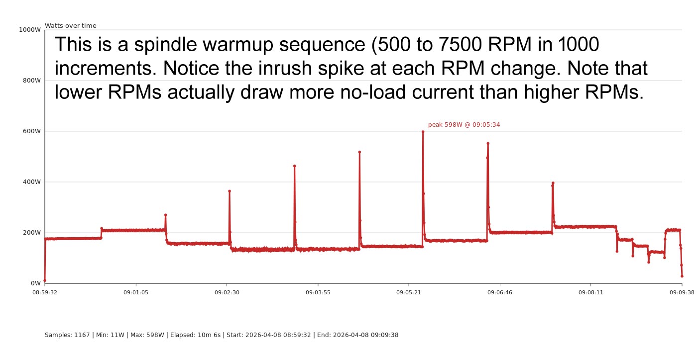 This load meter displays right on your main screen and shows calibrated Load, Amperage and Watts. Hardware installation takes less than five minutes, is completely non-intrusive and quickly removable. The software is copying less than five files over and rebooting the machine. Not only do you get the load meter, but you get a graphing utility where you can graph your load across time. You can graph individual NC programs (show me the load of widget.top.ops.nc and widget.bottom.ops.nc) and individual tools (show me the load of all usage for T125). If you think the below price is expensive, for comparison, Tormach sells an analog-only meter, that does not interface with PathPilot at all, has no graphing capability, requires invasive installation and is only compatible on certain, older machines for $152 + shipping. The software-only option below will include all required code and a BOM to source the parts you'll need. You do have variable options and don't have to select exactly what I use, but in the end, they're all the same. |
